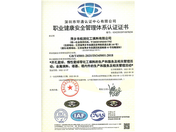 職業健康安全管理體系認證證書